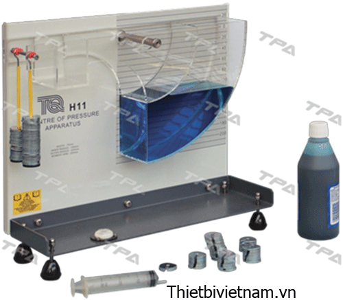 Bộ thực hành tâm áp suất cho phép sinh viên đo được mô-men gây ra bởi sức đẩy (thủy tĩnh) của chất lỏng trên một mặt phẳng chìm hoàn toàn hoặc một phần. Mặt phẳng làm việc theo thế dựng đứng hoặc nghiêng (theo góc). Sinh viên so sánh các kết quả đo đạc với những phân tích lý thuyết.
