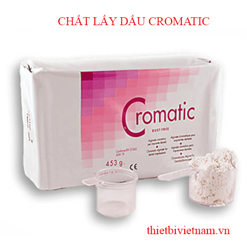 Cromatic là một loại Alginate không bụi, không có Gluten dùng để lấy dấu trong nha khoa có chỉ thị màu theo từng giai đoạn. Các công thức đặc biệt của Cromatic giúp loại trừ bụi trong quá trình sử dụng, hơn nữa sản phẩm cho phép sử dụng vật liệu chính xác mà không cần xem xét thời gian trộn và thời gian làm việc nhờ sự hiện diện của các thành phần làm thay đổi màu sắc trong suốt thời gian làm việc và thời gian đông cứng của vật liệu. Có màu trắng hương vanilla