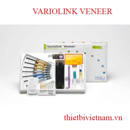 Variolink Veneer là hệ thống composite gắn quang trùng hợp, hạt độn lớn dùng để gắn, dán phục hình bằng sứ và composite có độ dày thấp (< 2.0 mm), ví dụ như veneer, inlay, onlay.