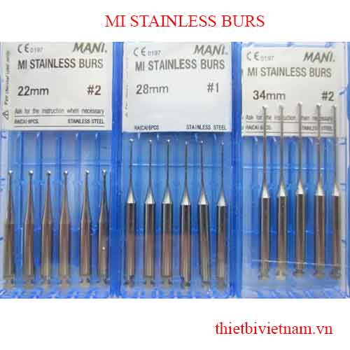 MI Stainless burs là dòng sản phẩm chuyện dụng để nạo bỏ ngà sâu của hãng Mani. Được chế tạo từ vật liệu thép mềm đặc biệt của hãng, MI Stainless burs có thể dễ dàng loại bỏ phần ngà sâu một cách nhanh chóng, nhưng vẫn đảm bảo bảo tồn nguyên vẹn phần ngà lành, hạn chế tổn thương, giảm ê buốt sau hàn trám. So với các sản phẩm cùng loại, MI Stainless burs có nhiều ưu điểm hơn hẳn: