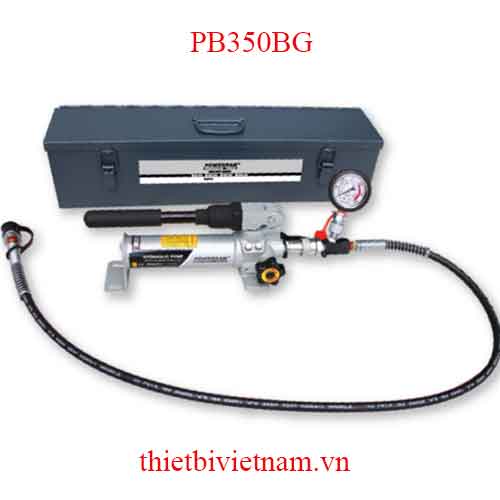 Bộ bơm thủy lực PB350BG, hoạt động bằng tay, đầy đủ phụ kiện, áp 700 bar. Vỏ bơm bằng thép, tay cầm bọc cao su. Bộ đầu đủ nằm gọn trong vali bằng thép có khóa cài chắc chắn.