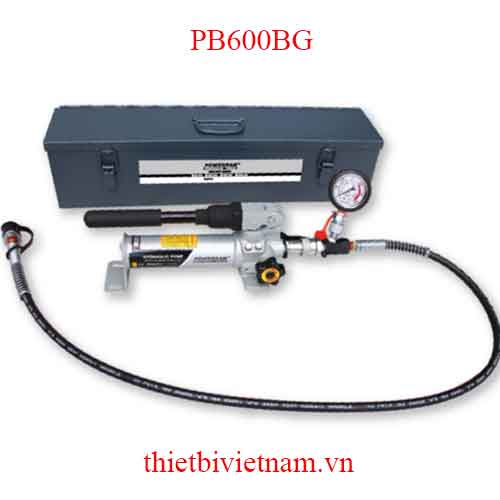 PB600BG bộ bơm thủy lực bằng tay 600ml vỏ thép Powerram Taiwan. Bộ hoàn chỉnh trong vali bằng thép có khóa cài. Đồng hồ áp suất, co nối, ống dầu 1,5m đã gắn khớp nối nhanh. Sẵn sàng hoạt động, thích hợp ghép nối với các dụng cụ thủy lực đơn trình (Single acting).