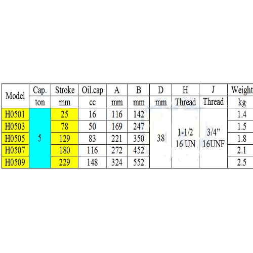 Kích thủy lực hãng BVA Model H0503