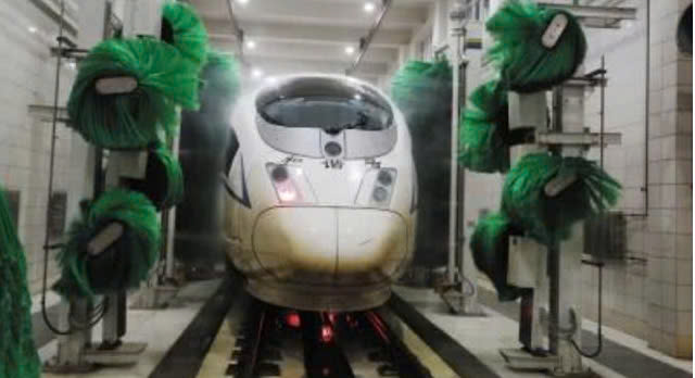 Lấy ví dụ về việc vệ sinh tàu cao tốc, người lái tàu sẽ lái tàu theo tuyến đường được chỉ định để đợi bên ngoài trạm rửa xe. Sau khi phối hợp với người vận hành máy rửa xe tự động, đoàn tàu sẽ đi qua thiết bị rửa xe với tốc độ từ 3 đến 5 km/giờ. Khi phát hiện có tàu hỏa chạy qua, thiết bị sẽ bật chế độ "vòi sen thông minh". Thiết bị rửa xe này có thể rửa xe bằng điện, do đó EMU vẫn có thể hoạt động an toàn ngay cả trong những ngày mưa.