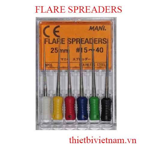 Flare Finger Spreader đảm bảo độ an toàn cao trong những ống tuỷ cong và nhỏ. Một khi ống tuỷ nhỏ được mở rộng và làm sạch, bạn có thể dễ dàng sử dụng MANI Flare Finger Spreader để ấn côn vào theo hướng vành và ngang của tường tuỷ. Với kích thước đạt chuẩn ISO, khách hàng có thể dễ dàng sử dụng sản phẩm này.